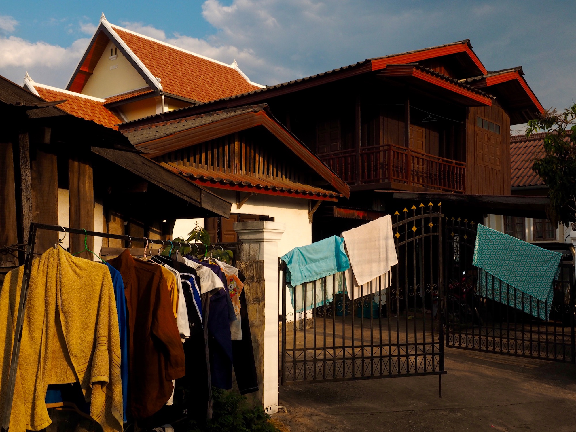 Luang Prabang ist uns sofort sympathisch. Es gibt keine hohen Häuser, viel alte Bausubstanz aus der französischen Kolonialzeit und natürlich die hohe Anzahl buddhistischer Tempel überall in der Stadt verteilt. Dazu die Lage der Altstadt zwischen dem mächtigen Mekong und seinem wesentlich kleinerem Nebenfluss Nam Khan. Die Stadt liegt in einer Ebene, umgeben von Bergen. Alles wirkt wie eine ruhige Provinzstadt, nur das Luang Prabang auf Grund seiner Geschichte und der herausragenden Bausubstanz als UNESCO Weltkulturerbe jede Menge Touristen anzieht und somit auch die gesamte Infrastruktur darauf ausgerichtet wurde: Hotels aller Preisklassen, Restaurants verschiedenster Geschmacksrichtungen und dazu jede Menge Tour-Anbieter, Souvenirläden und was ansonsten noch Geld einbringen kann. Aber trotzdem ist der Alltag der Stadteinwohner nicht davon zugeschüttet, sondern –zumindest außerhalb der Altstadt-Halbinsel – noch seinem täglichen Lauf folgend.