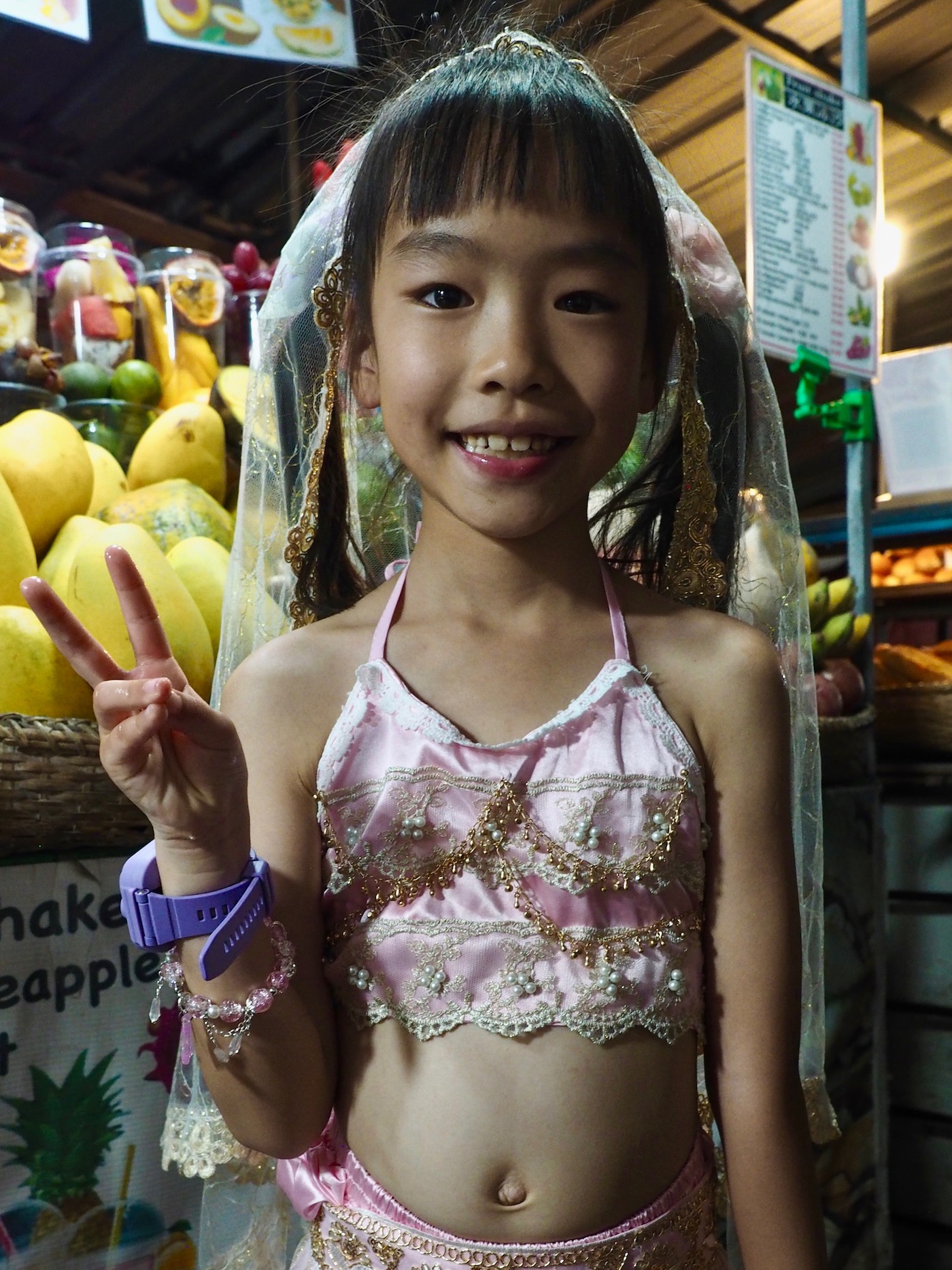 Der Markt für Esswaren findet täglich ab früh morgens statt. Es gibt eine Menge uns unbekannte Früchte und Gemüse. Dazu ein paar zumindest gewöhnungsbedürftige Lebensmittel. Wir entdecken noch lebende Käfer, durchgebratene Ratte und einiges undefinierbares. An einem der Stände, die schon gekochtes oder frisch zubereitetes verkaufen setzen wir uns auf zwei Hocker. Es gibt gebratene Eier mit einer scheinbar Fleisch beinhaltenden Masse, eingeschlagen in einen sehr dünnen Teig. Uns schmeckt es köstlich und zufrieden mit unsrem zweiten Frühstück schlendern wir noch ein wenig entlang der Reihen. Im Gegensatz zum Abend sind kaum Touristen unterwegs, dafür kaufen die Einheimischen ihren täglichen Bedarf hier ein. Überall erden Schwätzchen gehalten, Ware begutachtet und Geldscheine ausgetauscht.